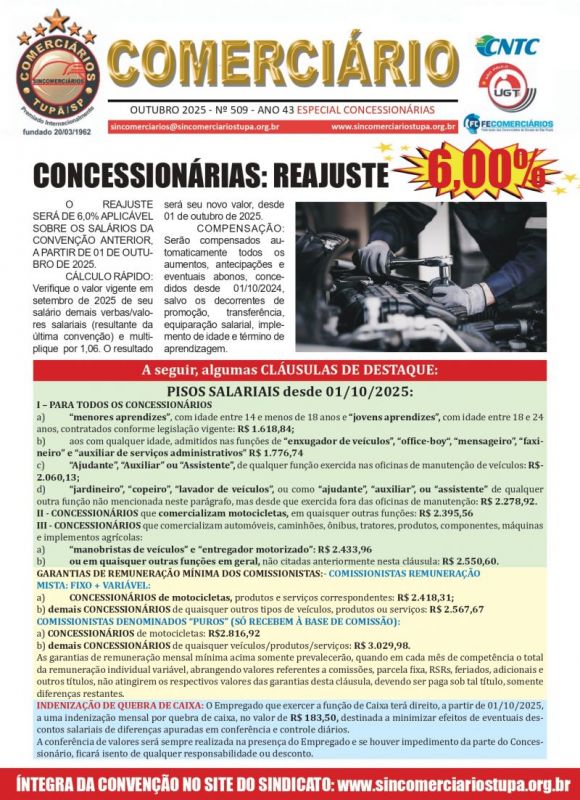 COMERCIÁRIOS DE CONCESSIONÁRIAS TÊM REAJUSTE SALARIAL DE 6%