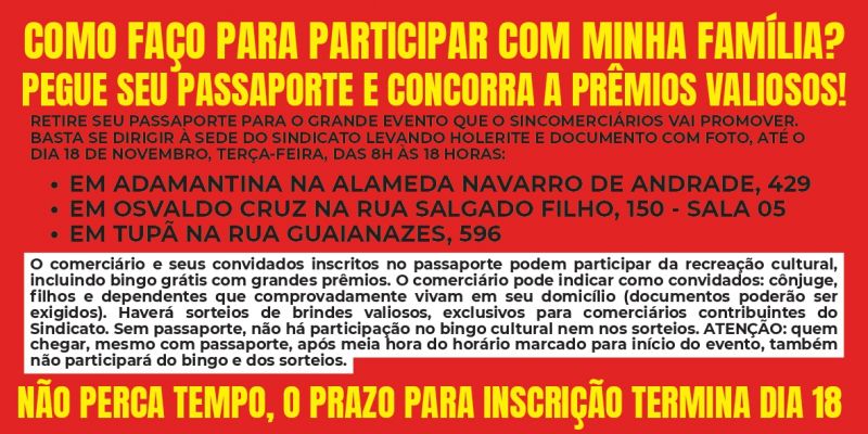 Sorteio de prêmios, bingo e muita festa para toda a categoria!